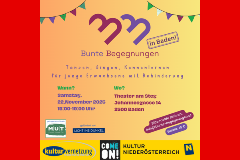 Nun zum zweiten Mal finden die Bunten Begegnungen im Theater am Steg in Baden statt: dieses Mal am Samstag, den 22.11.!