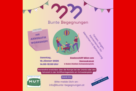 Am 18.01. laden die Bunten Begegnungen wieder auf das Badeschiff Wien ein - diesmal mit einem Akrobatik Workshop!