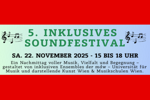Am 22.11. findet das mittlerweile 5. Inklusive Soundfestival statt. Ein Nachmittag voller Musik, Vielfalt und Begegnung - für alle!
