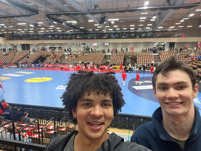 Jakob und ich haben ein Handball-Spiel besucht. Es war ein Freundschafts-Spiel zwischen Österreich und Tschechien. Die Mannschaften haben für die Europameisterschaft geübt. Ich habe Jakob bei der U-Bahn-Station abgeholt. Wir sind dann zusammen zur Sporthalle gefahren. Wir waren zu früh da. Wir hatten somit genug Zeit, um uns auf das Spiel zu freuen.